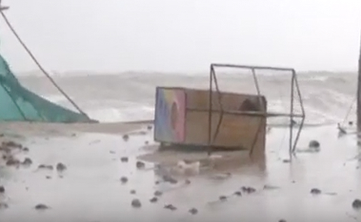 Wind speeds are also rising, toppling portions of shops close to the beach that had been reinforced by the owners.