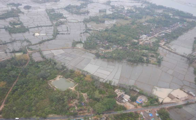 Large scale water inundation was observed in many areas, especially in the low lying ones between Puri and the tourist attraction Chilka Lake.