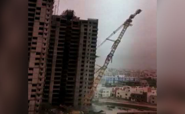 A crane installed at an under-construction sky-scrapper collapsed on Friday. The crane couldn't withstand gusting winds of upto over 200 km/hour as it crashed on the houses facing the building. It is not known yet if there were occupants in the houses.