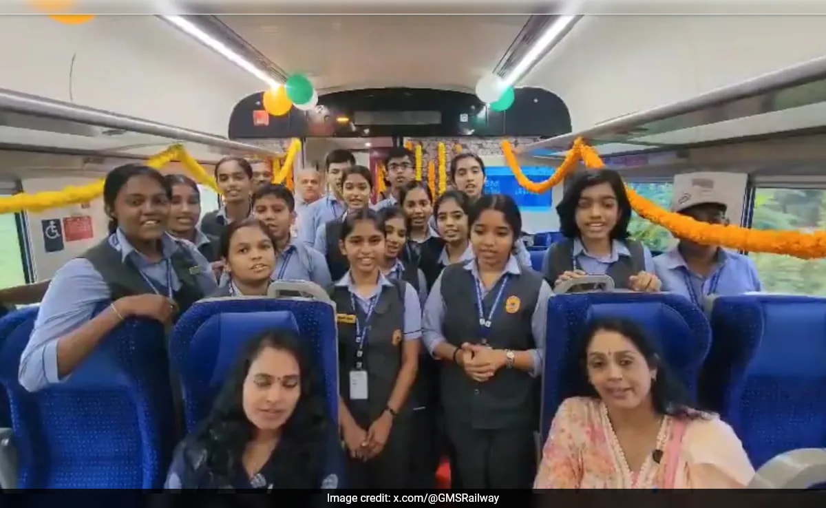 "The students of Saraswathi Vidyalaya beautifully performed their school song during the inaugural run of the Ernakulam-Bengaluru Vande Bharat Express," it said in the 'X' post.