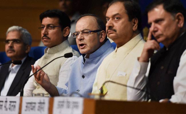 Finance Minister Arun Jaitley addressing a press conference on one year of Modi government (Press Trust of India photo)