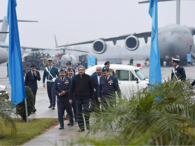 Defence Minister Manohar Parrikar and Air Chief Marshall Arup Raha arrive at the Hindon Air Force Station (PTI Photo)