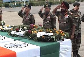 Army Chief General Bikram Singh (extreme right) pays homage to the five Indian soldiers who were killed at the Line of Control on Tuesday.