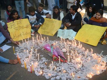 Indian protestors sit by lighted candles as they hold a protest against the gangrape of a student in New Delhi (AFP)