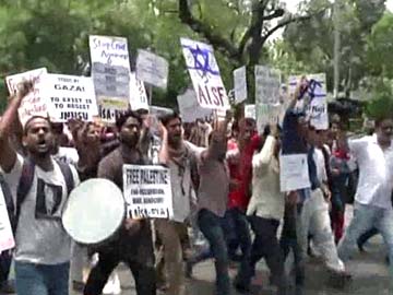 Students from Delhi University protested at the Israel Embassy