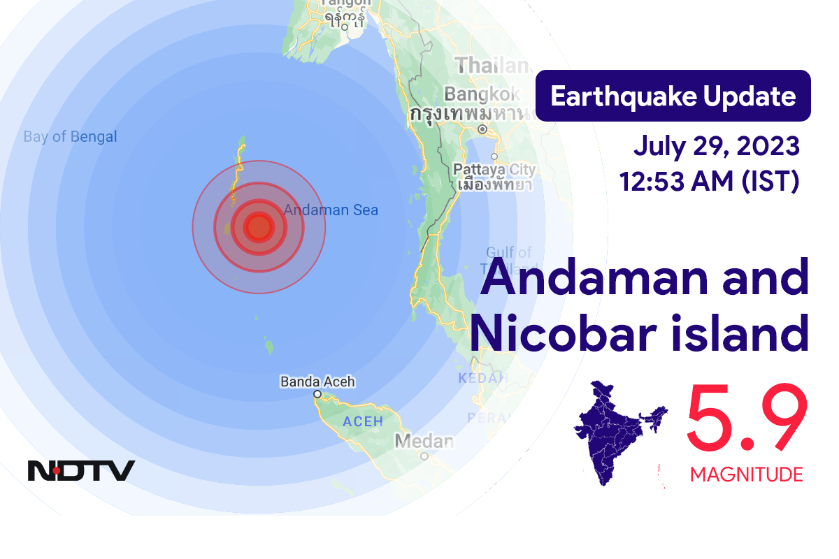 An earthquake of magnitude 5.9 was reported near Port Blair in Andaman and Nicobar Islands on Saturday morning, according to the National Center for Seismology.