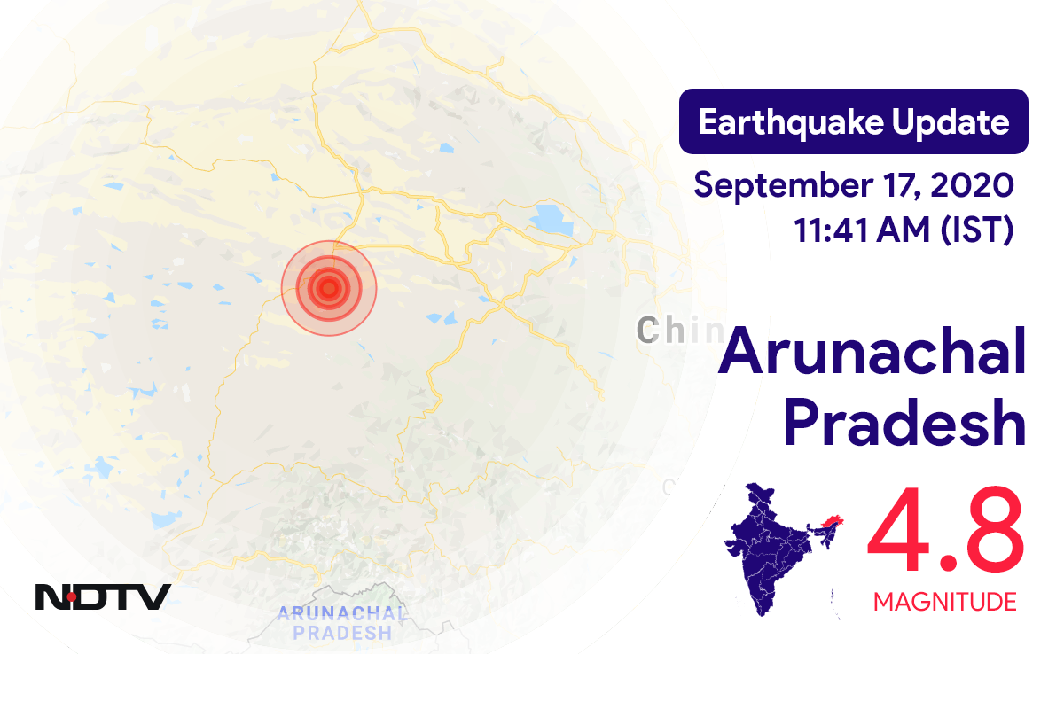 An earthquake of magnitude 4.8 was reported near Pangin in Arunachal Pradesh this morning, according to National Center for Seismology.