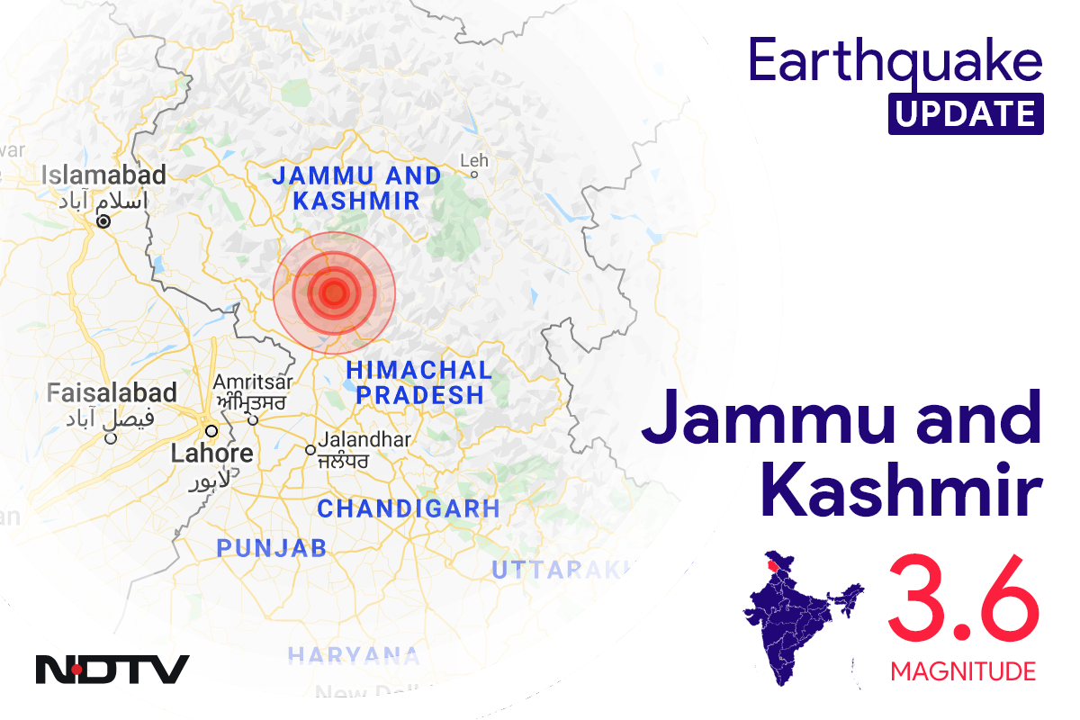 An earthquake of magnitude 3.6 was reported near Gandoh in Jammu and Kashmir on Thursday afternoon, according to India's National Center for Seismology.