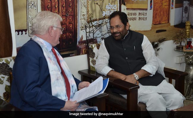 "At meetings with Government, including @naqvimukhtar, Minister for Minorities, I discussed FCRA, use of sedition and anti-terrorism laws, detentions, the situation of minorities, communal violence, situation in Jammu Kashmir, and individual cases," Gilmore tweeted, tagging Mr Naqvi's tweet on their meeting.
