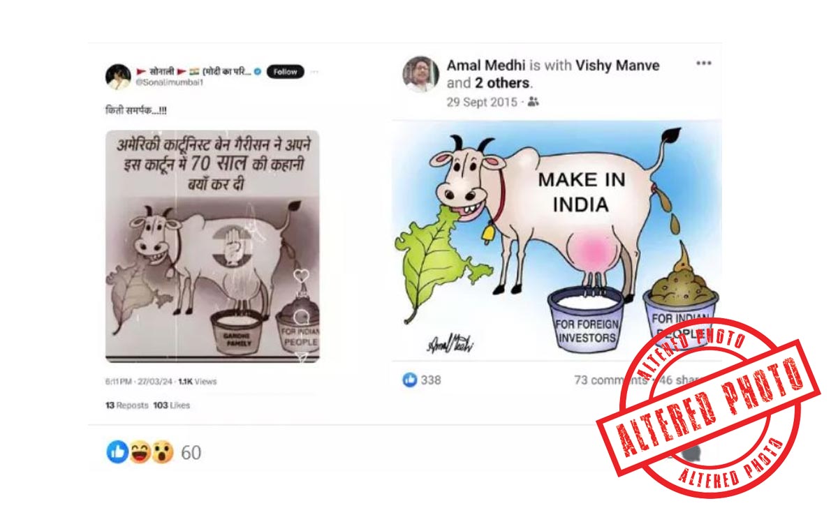 However, in the comments, a person shared a screengrab of a 2015 Facebook post, which carried a different version that pokes fun at the Government of India's 'Make in India' initiative and not the Gandhi family. The user stated that this is the original version of the cartoon which was not created by Ben Garrison but by Amal Mehdi in 2015 targeting the BJP.