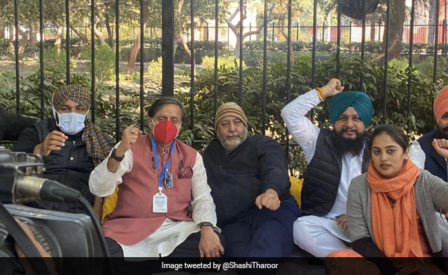 Mr Tharoor joined the protest held by the party MPs from Punjab at Jantar Mantar on Sunday.