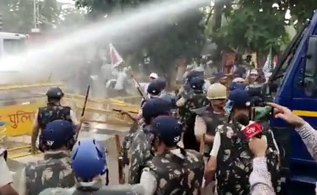 - Videos from the spot show flag-waving, slogan-shouting, cheering farmers jumping over barricades. Soon the police and their water cannons take over.