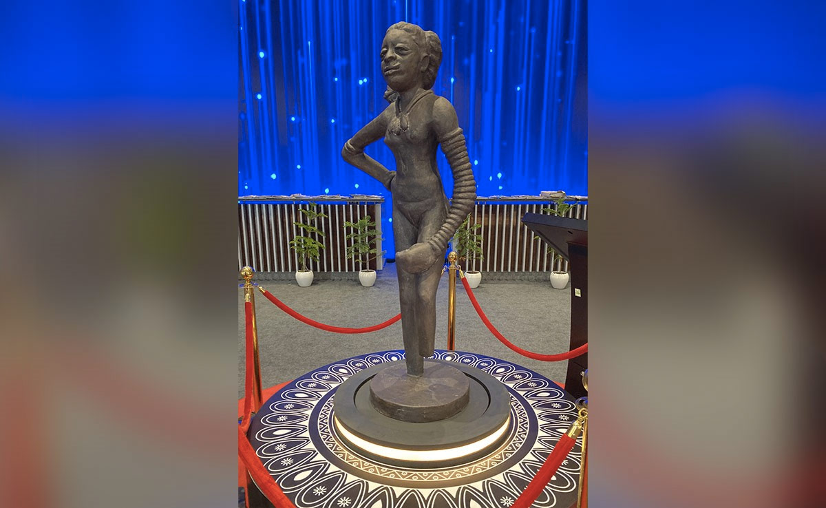 A conch made of bronze is installed outside the Bharat Mandapam.