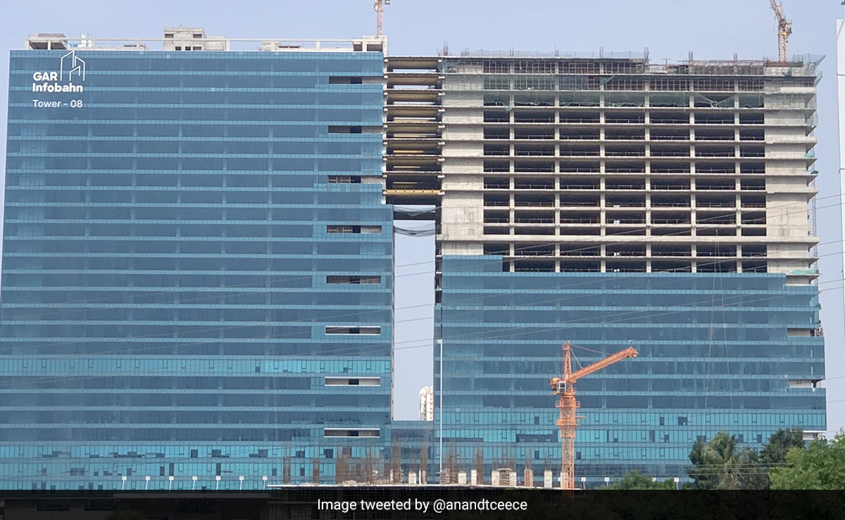 The twin towers being offered in GAR's Infobahn business park have 3.5 million square feet of rentable space across two interconnected buildings spanning about 27 floors, with roughly a quarter of the space already listed as leased to tenants. The glass-encased buildings also have a central food court, gym and day-care centre.