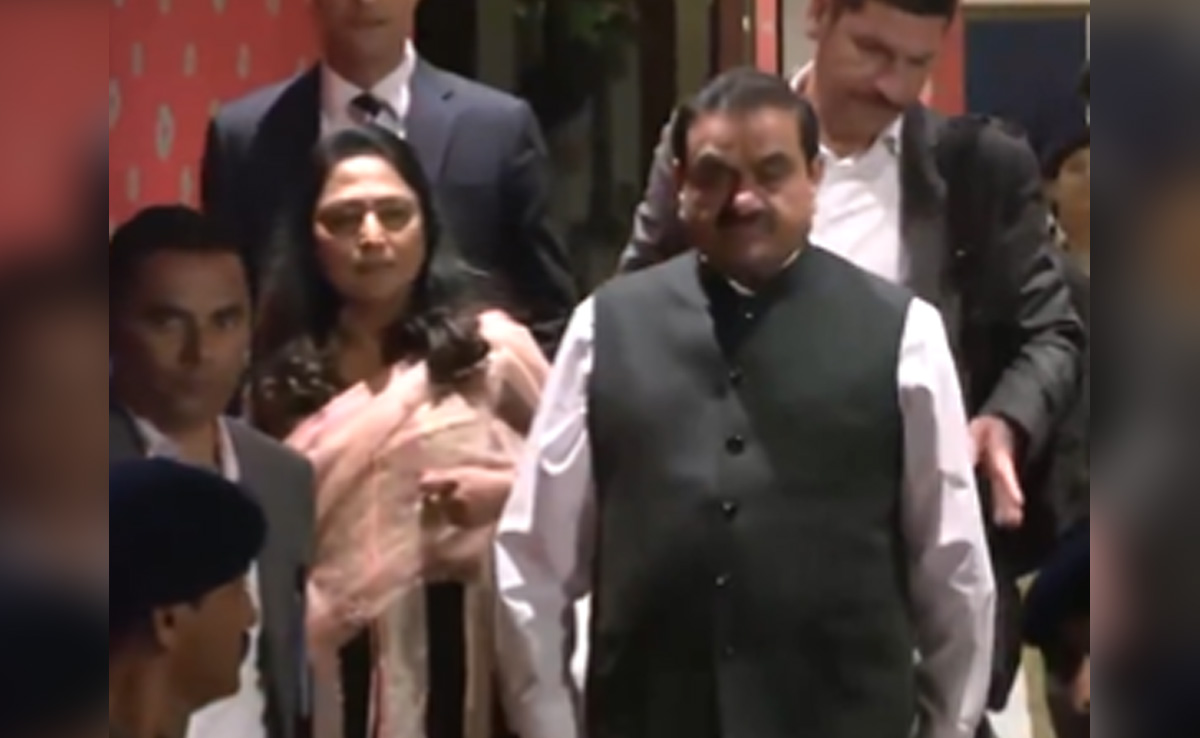 Billionaire Gautam Adani and his wife Priti Adani arrived in Gujarat's Jamnagar Saturday evening to attend the pre-wedding festivities of Reliance chairman Mukesh Ambani's youngest son Anant Ambani and industrialist Viren Merchant's daughter Radhika Merchant.