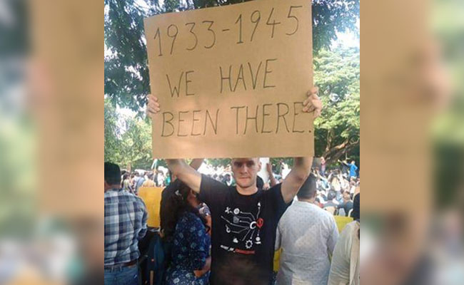 In images from last week, the 24-year-old student was spotted in several protests. In one, he was seen holding a placard that read: "Uniformed Criminals = Criminals". Another placard he held up said: "1933-1945 We have been there". He was reportedly told by officials that his participation in the protests was a violation of his visa terms and he had to leave India immediately.