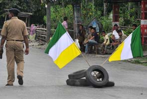Gorkha Janmukti Morcha (GJM) flags are placed on blocked roads