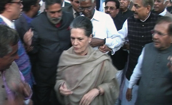 In a big show of opposition unity, Congress president Sonia Gandhi walked briskly flanked and followed by over 100 lawmakers as she led a march from Parliament House to the Rashtrapati Bhawan less than a kilometre away, in protest against land reforms crucial to the government's economic agenda.