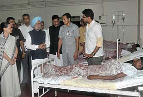 Dr Singh and Sonia Gandhi spent around 25 minutes at Saifee Hospital where 37 of the 131 wounded are undergoing treatment.