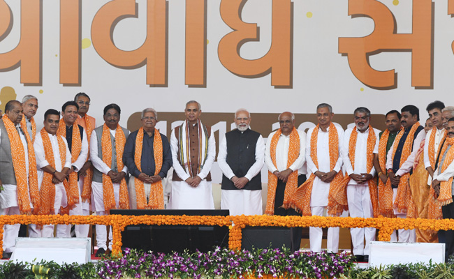 Six others also took oath as ministers of state - Parshottam Solanki, Bachu Khabad, Mukesh Patel, Praful Pansheriya, Kuverji Halpati and Bhikhusinh Parmar.