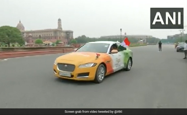 The man was seen driving near the Parliament, with his co-passenger waving the National Flag, in a video shared by news agency ANI. 'Azad Ka Amrit Mahotsav' can be seen written on the car's bonnet.