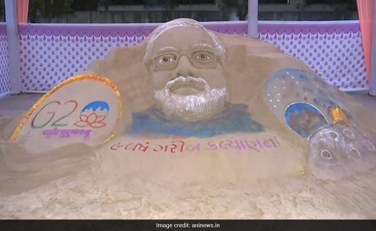 In a unique celebration of the Prime Minister's upcoming birthday on September 17, a sand artist has created a grand sand art here depicting Narendra Modi with Chandrayaan-3 and the G20 summit logo.
