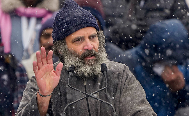 The Congress's Bharat Jodo Yatra's closing ceremony began with a flag-hoisting ceremony at the party's office in Jammu and Kashmir's Srinagar today amid inclement weather. A rally at a stadium followed soon. Top Kashmiri leaders, National Conference's Farooq Abdullah and Mehbooba Mufti from People's Democratic Party, spoke at the event amid heavy snowfall. Speeches by the Congress leadership, including Rahul Gandhi, who has led the march, followed.
