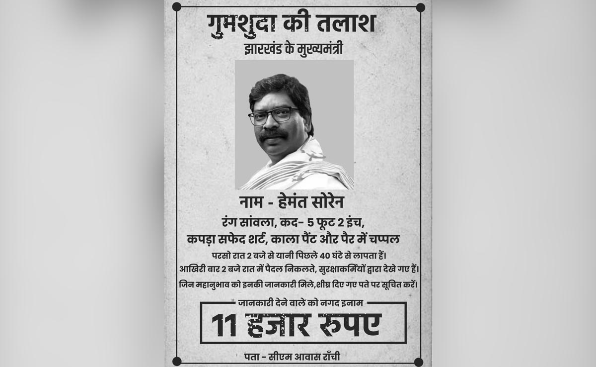 As officials of Enforcement Directorate (ED) struggle to track down Jharkhand Chief Minister Hemant Soren, the BJP has launched a scathing political attack by releasing a 'missing' poster with the Chief Minister's photograph.