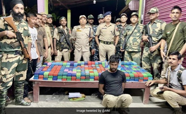 In a major narcotics haul, heroin worth over Rs 45 crore was seized from a truck by a joint team of the Border Security Force or BSF and Assam Police in Karimganj district today, a police officer said.