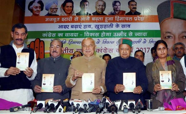 Himachal Pradesh goes to polls on November 9. The manifesto released by Chief minister Virbhadra Singh, Health Minister Kaul Singh, who is also chairman of manifesto Committee and AICC general secretary Sushil Kumar Shinde claimed that Congress had fulfilled 95 per cent of poll promises and would implement the remaining promises and fresh promises in the next term, if voted to power.