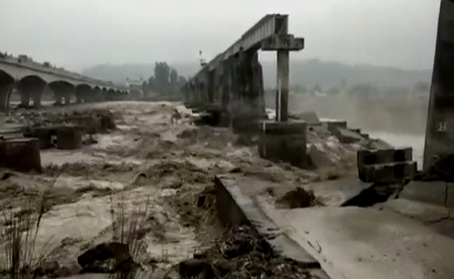 In visuals from the scene, part of the railway bridge that has been constructed on the Chakki river can be seen collapsing amid downpours.