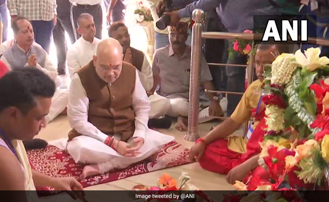 The state unit of the BJP shared a video of Shah performing "aarati" and seeking blessings of the priests at the temple, which is said to be more than 100 years old and built on land donated by a Muslim nawab.