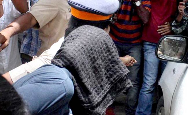 Indrani Mukerjea being taken, with her face covered, for questiniong to the Khar Police Station in Mumbai on Saturday. (Press Trust of India)
