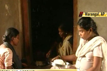 Mallamma has pulled her second daughter Rajitha out of school. Every day, mother and daughter walk to the NREGS work site near their village in Warangal district. Whatever they earn is meant to feed the family. They haven't eaten vegetables in weeks. In her state of advanced pregnancy, Goutami can't afford a nutritious diet.