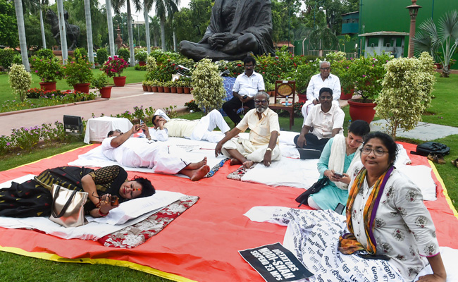 The MPs are holding the protest near the Gandhi statue and will stay at the site through the night, said the Trinamool Congress' (TMC) Dola Sen, who is one of the suspended.