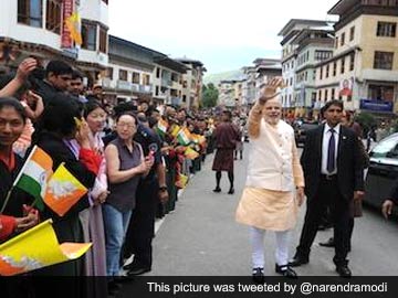 Prime Minister Narendra Modi greets the people of Thimphu