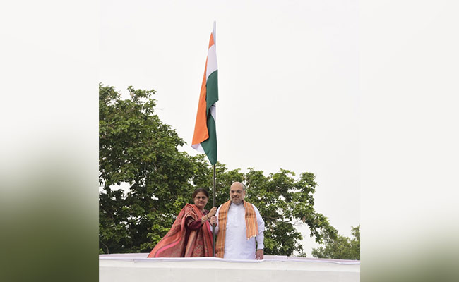 Union Home Mister Amit Shah and his wife Sonal Shah raised the Indian flag at their residence.