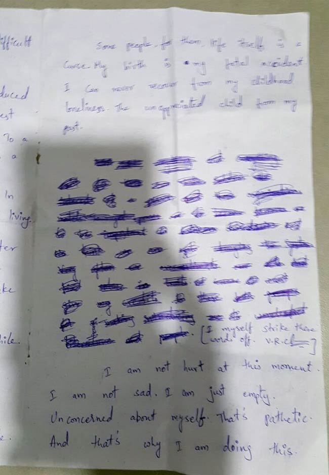 In the turmoil over the suicide of Hyderabad university research student Rohith Vemula, his last letter has thrown up a mystery. An entire paragraph has been scratched off and experts are investigating who did it.