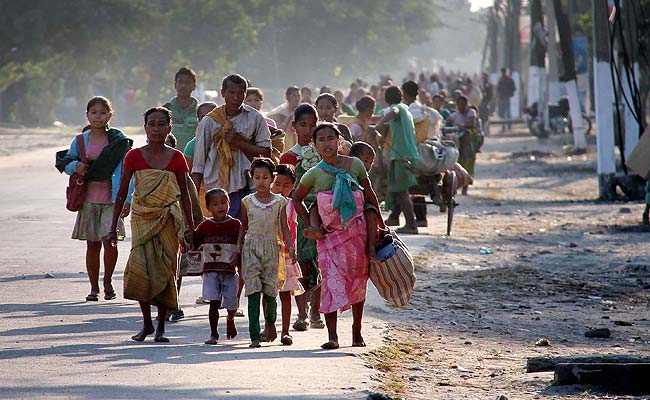 Bodos moving to safer places after the violence in Kokrajhar in Assam on Thursday (Press Trust of India photo)