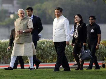 Chinese President Xi Jinping walks with PM Modi during his visit to Ahmedabad on September 17. (Reuters)