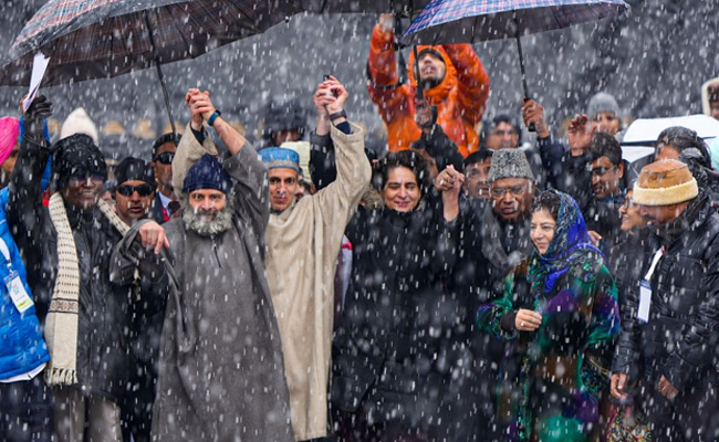 Meanwhile, Congress leader Jairam Ramesh shared a photograph of himself with party colleague Digvijay Singh. Ramesh tweeted, "The Do Bechare... residents of Container #12 and #14 saying farewell at the end of #BharatJodoYatra in a snowy Srinagar to their abodes for the last 135 days."