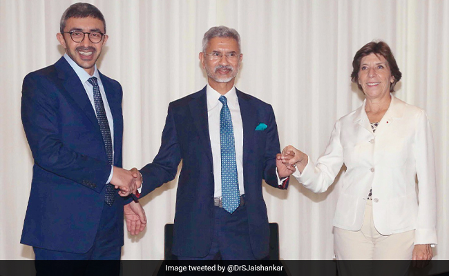 "A productive first trilateral Ministerial meeting of India-UAE-France. Active exchange of ideas between strategic partners and UNSC members," Mr Jaishankar tweeted after the meeting, hosted by the UAE on Monday, with UAE Foreign Minister Sheikh Abdullah bin Zayed Al-Nahyan and French Minister for Europe and Foreign Affairs Catherine Colonna.