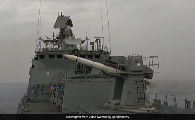 The Indian Navy shared on Thursday a video of its surface-to-air (SAM) system engaging a low-flying object from one of its frigates in the Indian waters and hitting it with absolute accuracy.