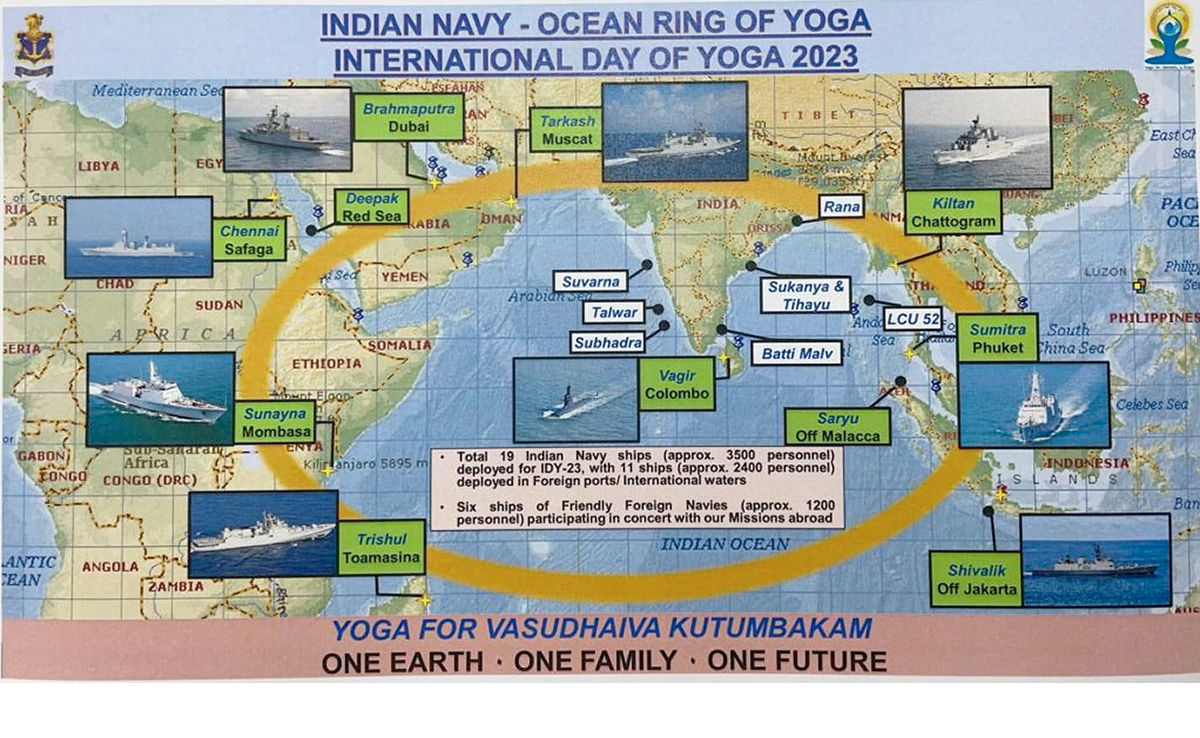 The Navy said yoga sessions are scheduled at most of the foreign ports that will be visited by the ships. Port calls are planned at Chattogram in Bangladesh, Safaga in Egypt, Jakarta in Indonesia, Mombasa, in Kenya, Toamasina in Madagascar, Muscat in Oman, Colombo in Sri Lanka, Phuket in Thailand and Dubai in the United Arab Emirates (UAE) by naval ships Kiltan, Chennai, Shivalik, Sunayna, Trishul, Tarkash, Vagir, Sumitra and Brahmaputra respectively.