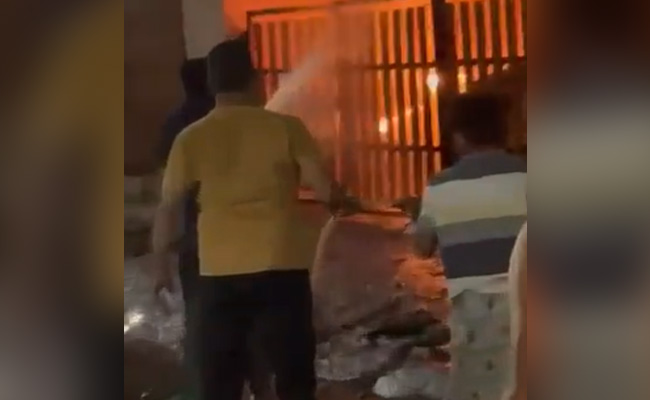 Videos on social media showed flames and thick smoke enveloping the building, causing sparks in electricity cables with people crying and screaming for help.