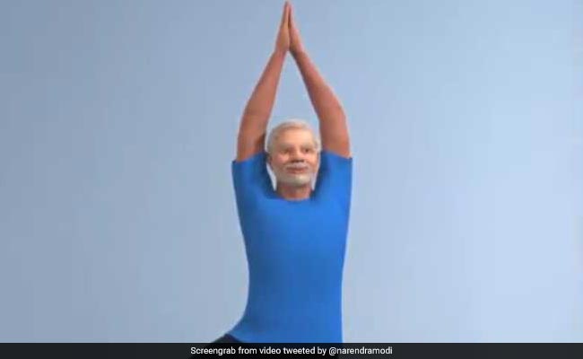 Prime Minister Narendra Modi today tweeted a third video of his animated version performing a yoga posture, weeks ahead of the International Yoga Day on June 21.
