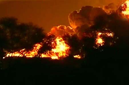 10:30pm, Thursday: All 11 containers exploded, each turning into an inferno.