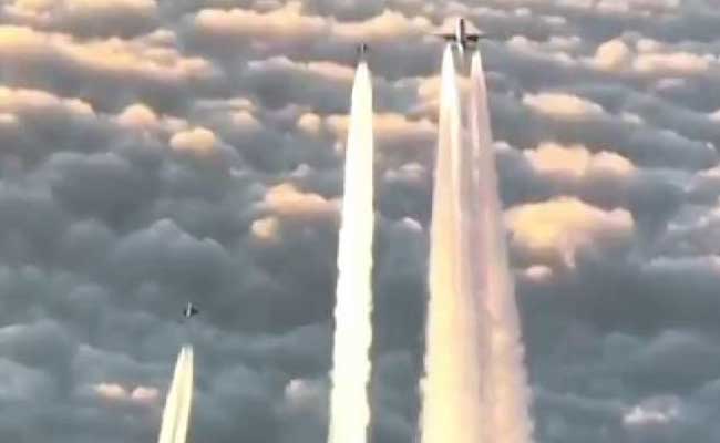 Dramatic footage of the incident, posted by website Aviation Herald, showed the Jet Airways flight being escorted by two fighter jets - vapour trails billowing in their wake. NDTV cannot verify the authenticity of the video.