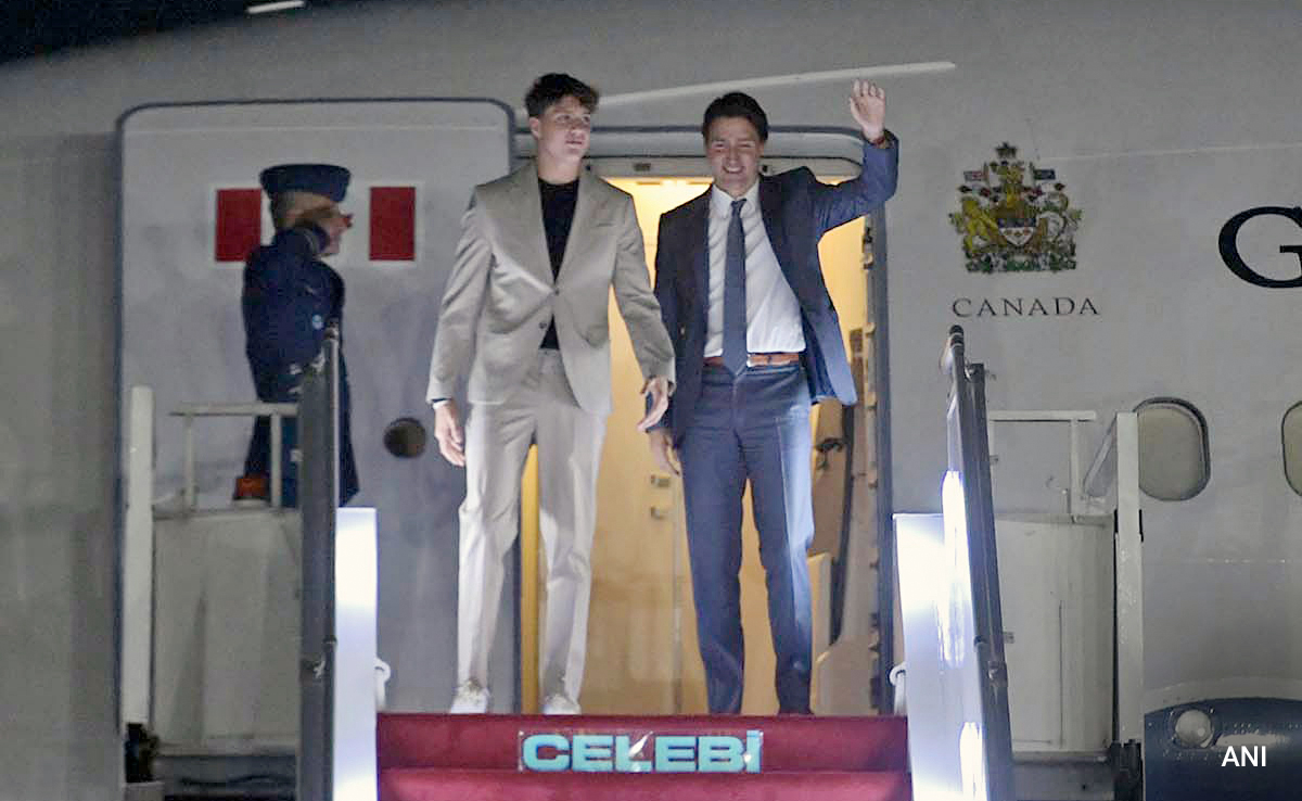 In a video shared by ANI on X, formerly Twitter, the Canadian Prime Minister and his eldest son are seen deplaning while waving at those present at the airport to receive them. Xavier Trudeau is wearing a fine beige colour suit over a black T-shirt as he follows his father and meets officials welcoming them.