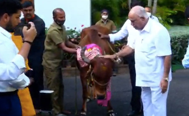 Karnataka Chief Minister BS Yediyurappa today performed cow puja at his official residence in Bengaluru. His party is celebrating the passing of a new cow protection bill by the state Assembly this week, though the BJP knows it lacks the numbers to sail through the Legislative Council, a move necessary to make it a law.